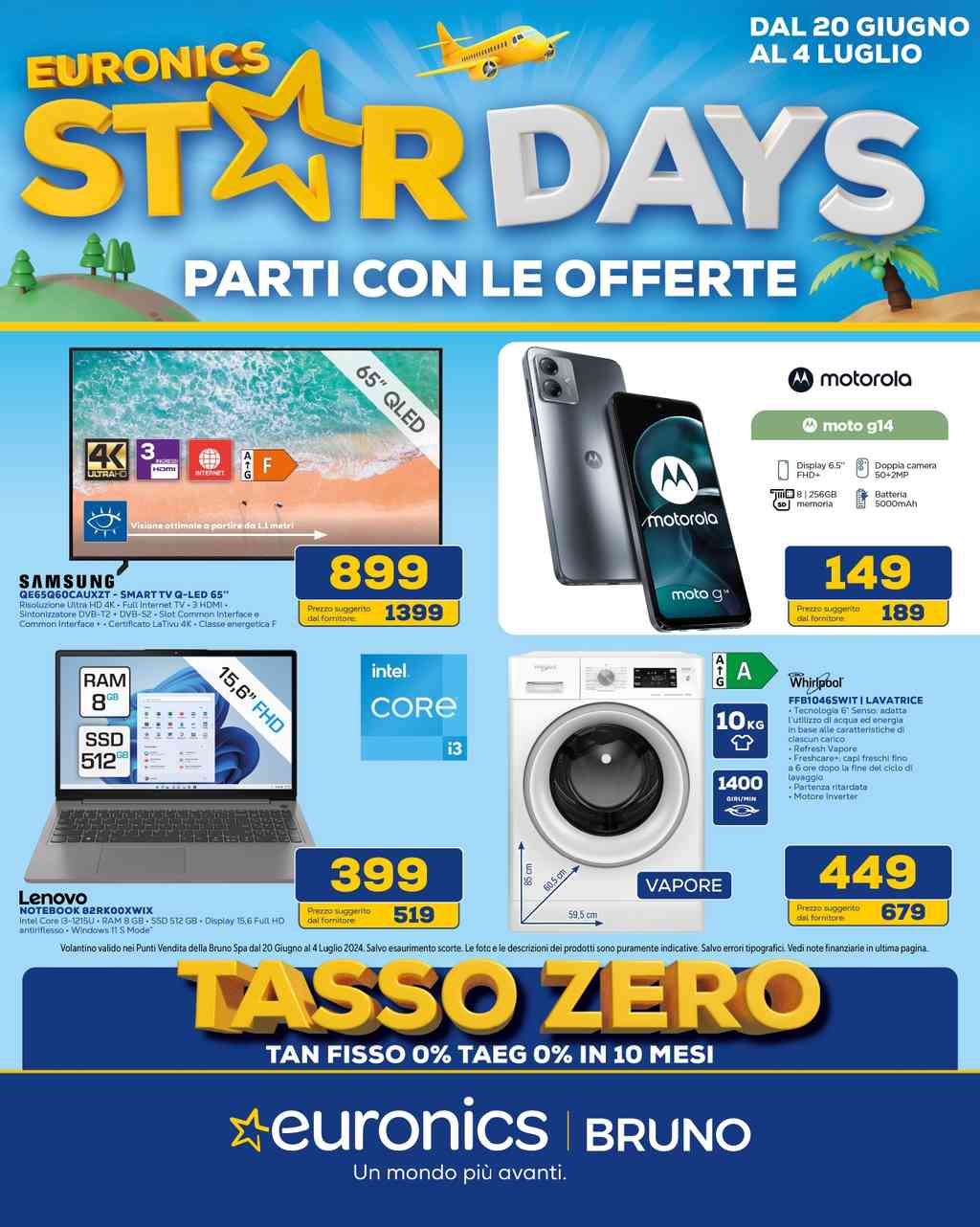 Il nuovo volantino Euronics della catena di negozi Bruno dal 20 giugno al 4 luglio 2024 è finalmente disponibile e propone una vasta gamma di offerte su prodotti tecnologici di ultima generazione. Se quindi state cercando di aggiornare i vostri dispositivi tecnologici o semplicemente di fare un buon affare, questo volantino è un buon punto di partenza. Vediamo insieme alcune proposte di questo catalogo.