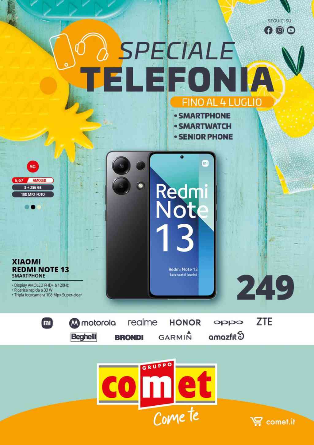 Il nuovo volantino Comet dal 20 giugno al 4 luglio 2024 è dedicato alla telefonia e presenta una serie di offerte interessanti su smartphone di ultima generazione e smartwatch. Di seguito, una panoramica sui principali modelli promossi e alcune offerte speciali.
