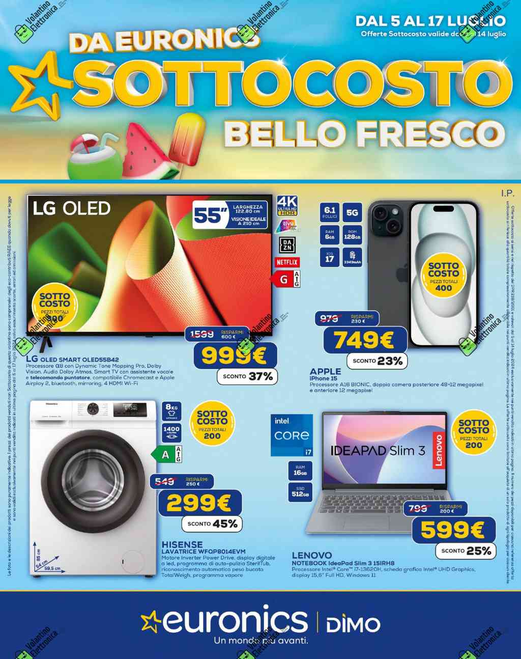 Il volantino Euronics dal 5 al 17 luglio 2024 della catena Dimo presenta una serie di offerte che coprono diverse categorie di prodotti tecnologici e per la casa. Tra gli smartphone, i modelli in evidenza includono i top di gamma come l’iPhone 15 Pro Max e il Samsung Galaxy S24 Ultra, quest’ultimo proposto con l’offerta sottocosto a 999 €. Attenzione che la promozione del sottocosto termina il 14 luglio 2024!