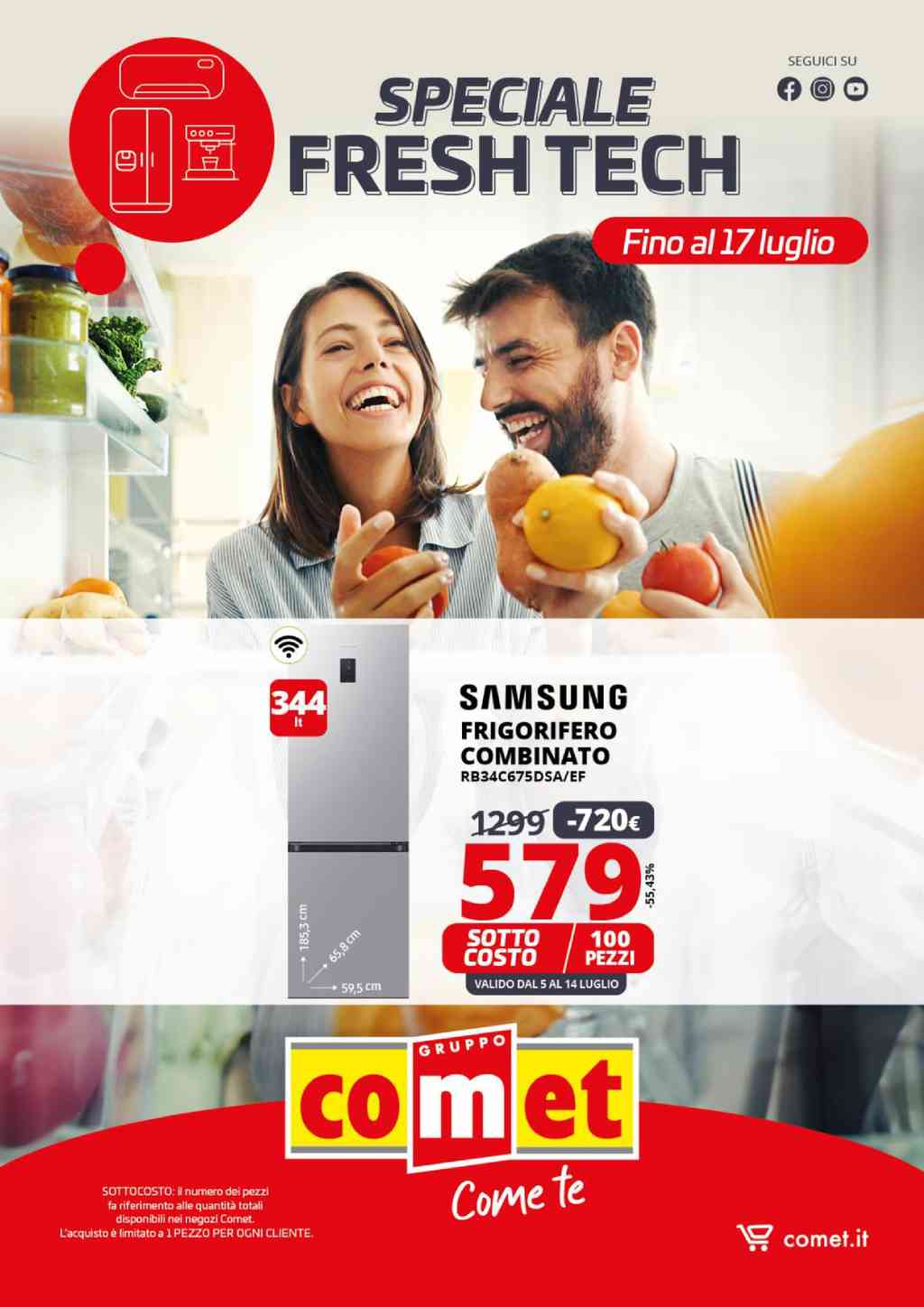Il volantino Comet Fresh Tech dal 5 al 17 luglio 2024 offre imperdibili sconti su una vasta gamma di elettrodomestici. Tra le varie offerte troviamo frigoriferi di marca Samsung, Indesit e Hisense a prezzi scontati, ideali per chi cerca affidabilità e tecnologia avanzata. Inoltre, sono disponibili piccoli elettrodomestici come il frullatore Moulinex e il mixer a immersione Braun, perfetti per facilitare le preparazioni in cucina.
