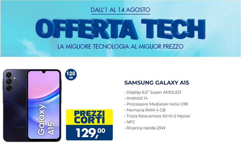 L’estate porta con sé non solo il caldo e le vacanze, ma anche le offerte tech di Esselunga. Dal 1 al 14 agosto 2024, la catena di supermercati italiana propone una serie di sconti eccezionali su dispositivi tecnologici di ultima generazione. Tra questi abbiamo in primo piano il Samsung Galaxy A15, un nuovo smartphone che promette di soddisfare le esigenze sia dei giovani che degli adulti.